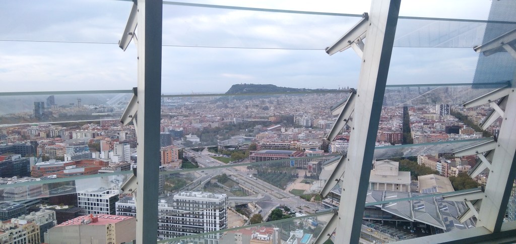 Després d’aquesta experiència virtual, on Ildefons Cerdà va projectar la plaça de les Glòries com a centre de la Ciutat. Idea que realment mai s’ha aconseguit, convertint la plaça en un galimaties d’obres inacabables, d’ençà que tinc ús de raó, ens desplacem a la planta 30 a 125 metres d’alçada