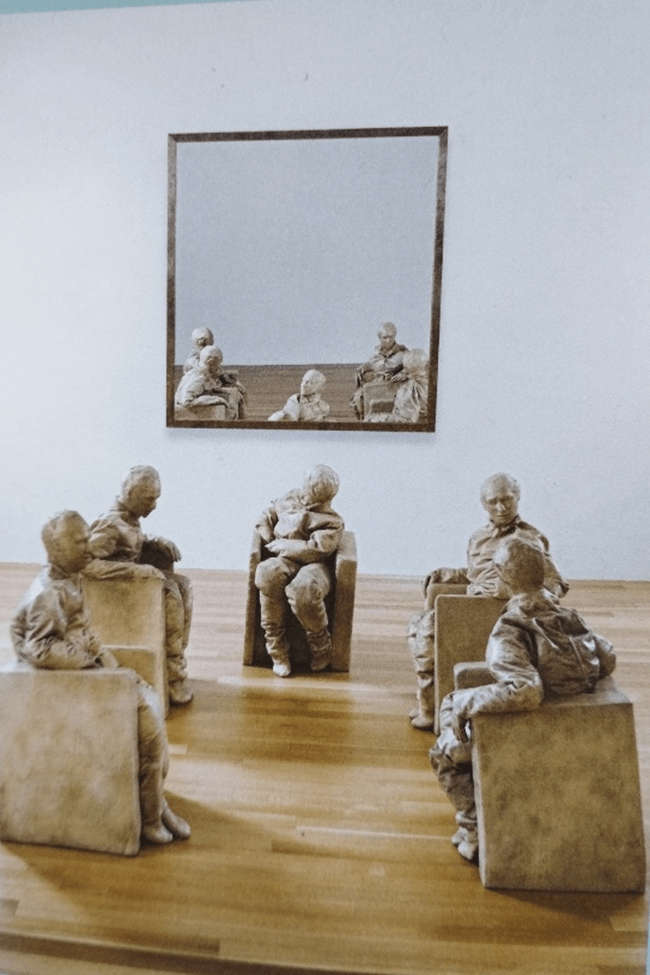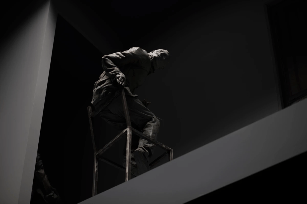 Les seves obres són sovint figures humanes quietes, estàtiques, silencioses, enigmàtiques, que ens forcen a reflexionar sobre la tensió entre el ser-hi i el no ser-hi. En molts casos no tenen peus i la cara és igual. És una bona ocasió per veure la connexió entre l’escultura contemporània y la pintura clàssica. Per explorar com l’artista contemporani dialoga amb els grans autors del passat, no imitant-los sinó refent els seus materials. A l’exposició també hi trobem obres de diferents col·leccions privades i d’altres institucions difícils de veure habitualment.
