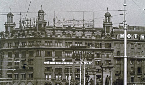 A partir de mitjans dels anys 30 les façanes i terrats dels edificis, eren llocs idonis per exposar anuncis publicitaris lluminosos, sobretot els que estaven ben situats en llocs cèntrics i comercials, especialment els edificis de plaça Catalunya, tot degut a la gran explosió de l’Exposició, que era dirigida a la indústria elèctrica, que impulsaven la publicitat exterior amb grans rètols de llums de neó.