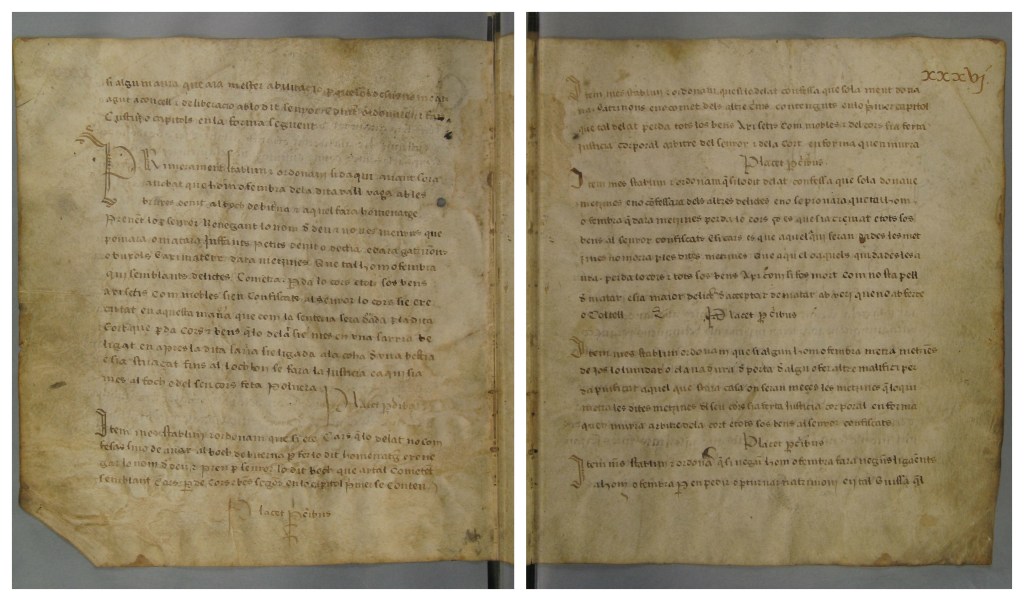 Llibre de privilegis de la vall d’Àneu. Arxiu de la Corona d’Aragó, Diversos, Vària, 30, Volúmenes, 9, f. 35v i 36r.